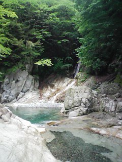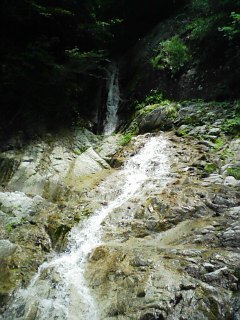 沢沿いに下り続け、17時頃「イイハシの大滝(大棚)」で