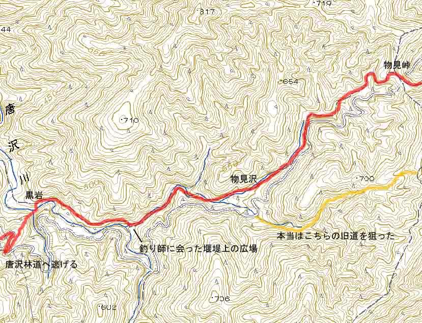 地図を見てると、煤ヶ谷から物見峠を越えるルートも考えられます。そこでT氏は