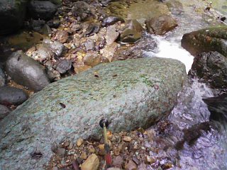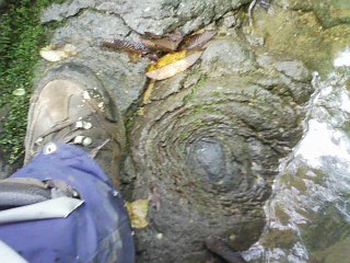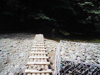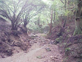 旧道に入ってから忘れていたが、T氏はここの河原でヒルチェックを