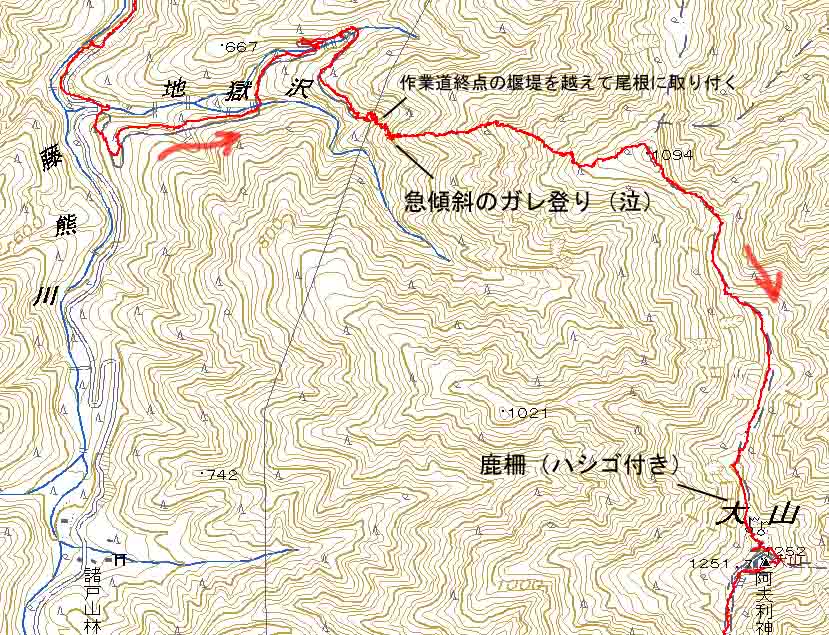 地獄沢の作業道終点からの登りは覚悟してたがやっぱり