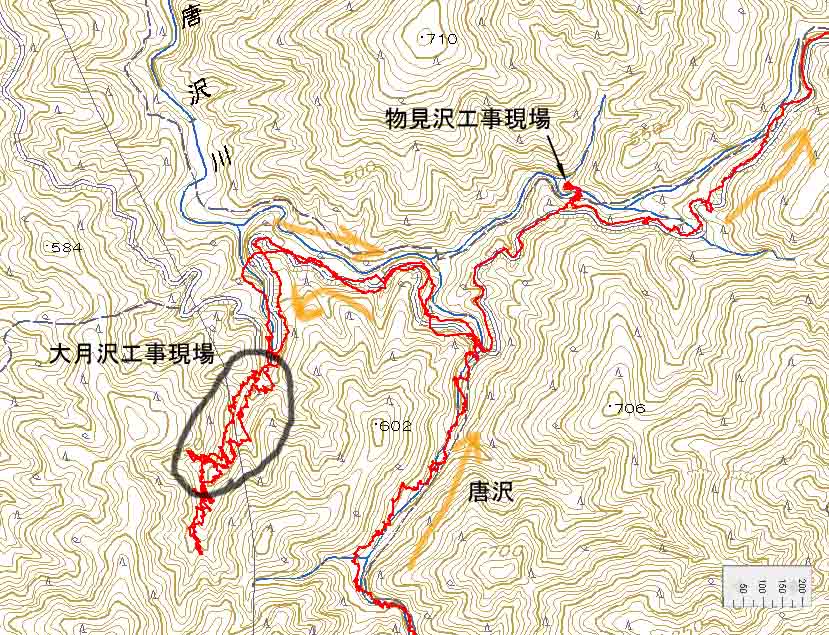 唐沢林道で目撃した生コントラックはどうも大月沢の治山工事っぽい、