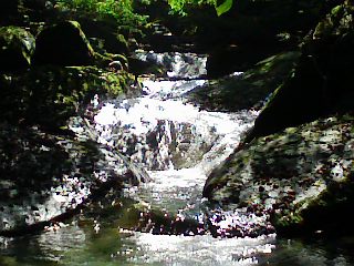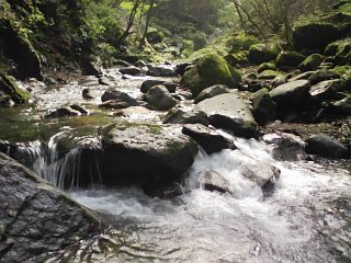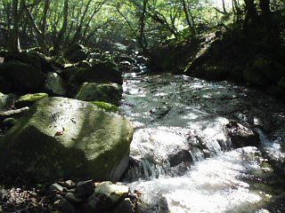 山深い渓流で、飛び込んだりよじ登ったりの、日ごろ体験することの