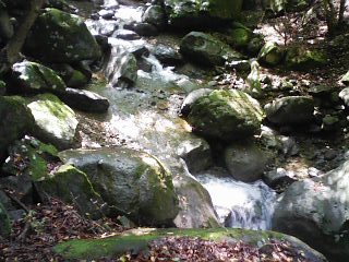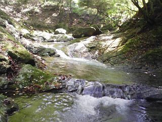 大山北方の唐沢林道沿いにある沢で、川遊びやシャワークライミングをする