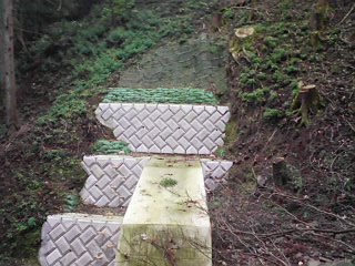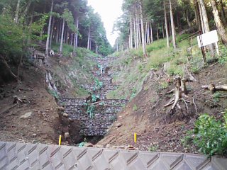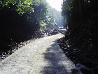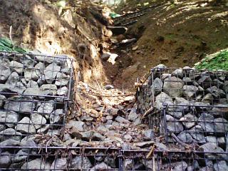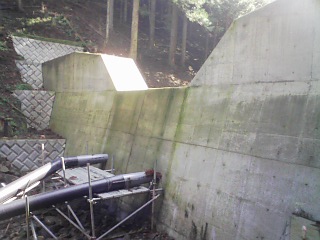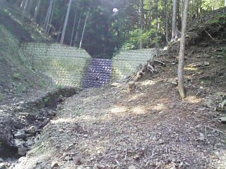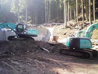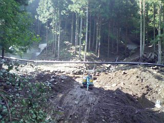 沢より広い作業道を拓いてコンクリぶちまけながら入口だけは砂利道を