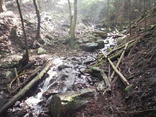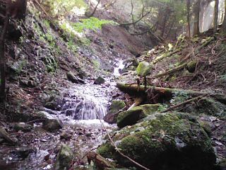 物見峠から唐沢林道をさらに奥に向かい、途中から斜面をロープで下って、