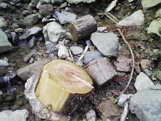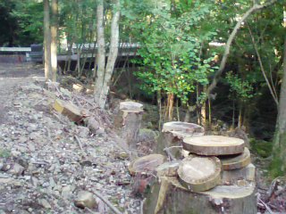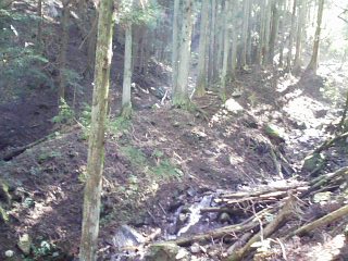 残すという姑息な隠蔽工作が施されており、沢の両側は無惨に伐採、