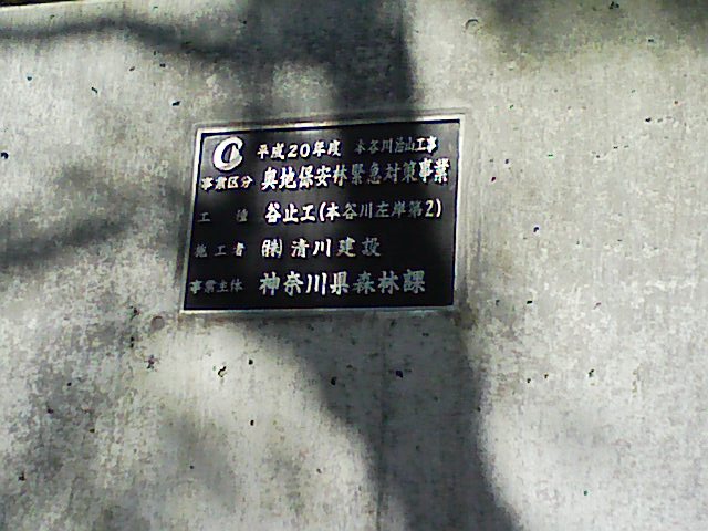 本谷林道に入ってすぐ、上りで左手に見える谷止は