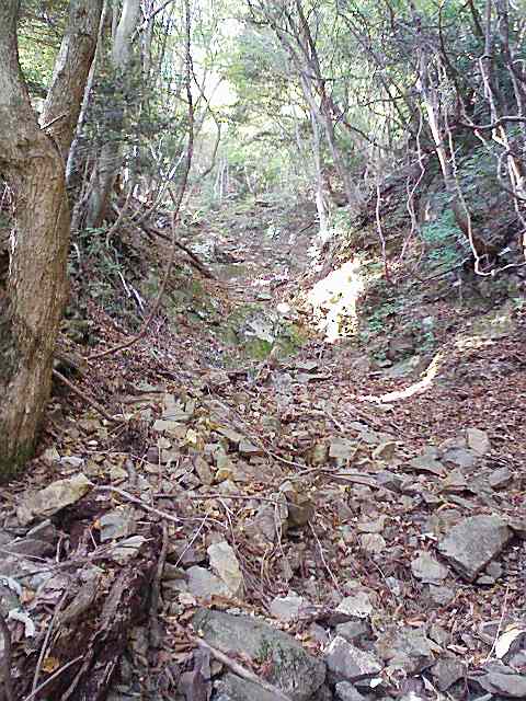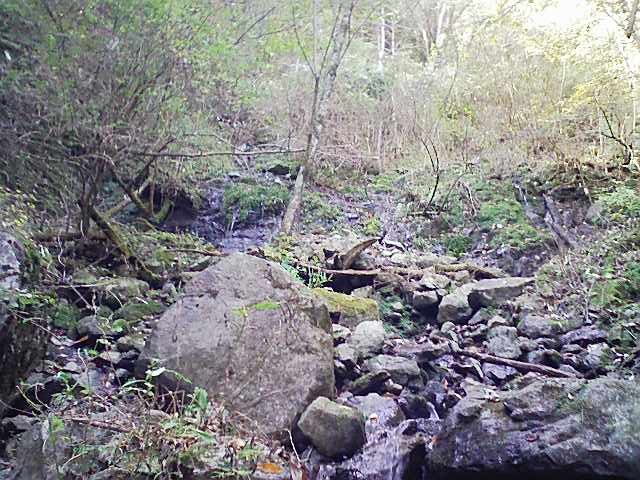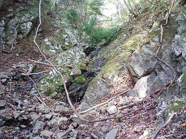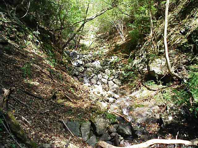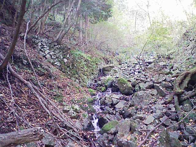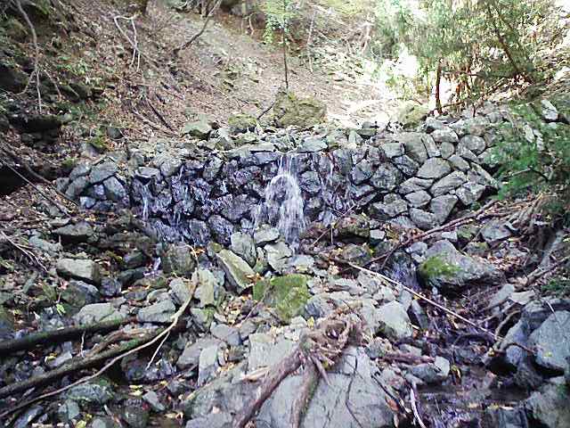 その上流はガレてはいるが、不出来ながら石積谷止工もあり、