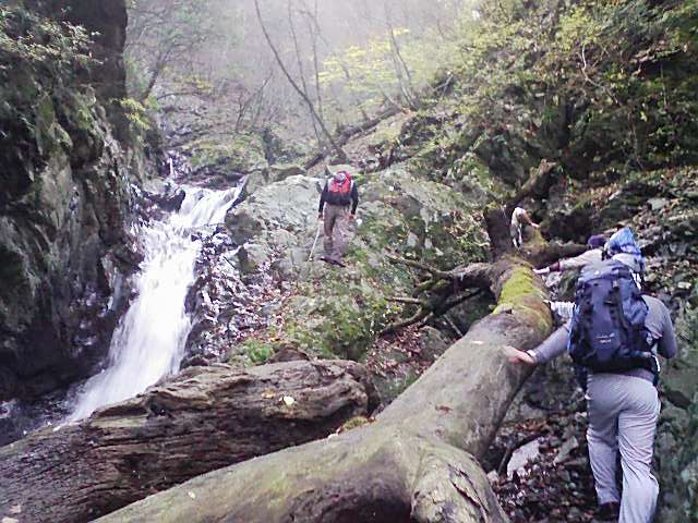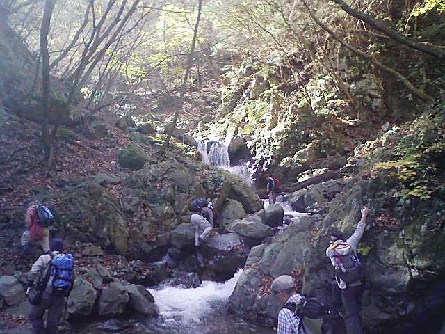 前日の雨でオバケ沢の水量は3倍増(M-K総帥談)。遡行に