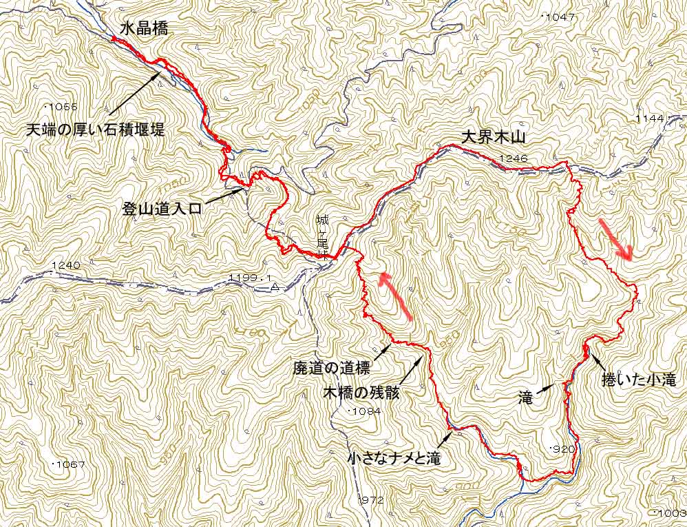 当日は水晶橋から城ヶ尾峠を経て大界木山を少し越え、戸沢を下りて