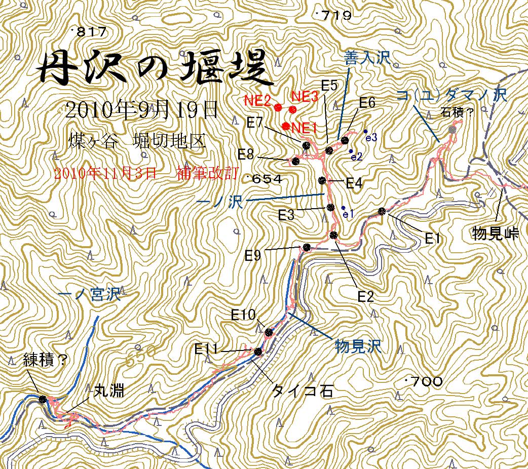 (2)煤ヶ谷堀切地区「一ノ沢」上流の石積み探し(3個発見)