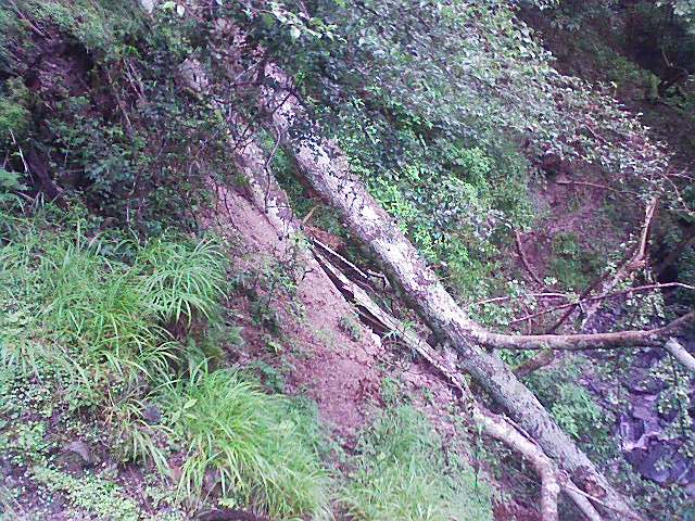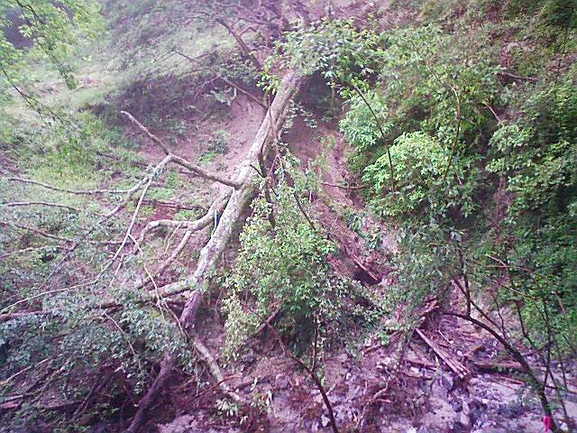 昨年の豪雨で小さな沢にも土石流が発生し、